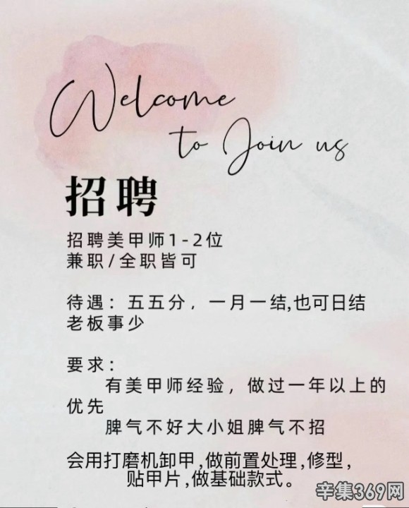 招有工作经验美甲师,最好一年以上工作经验,可独立完成美甲款式,且审美在线,工作自由,老板事少。